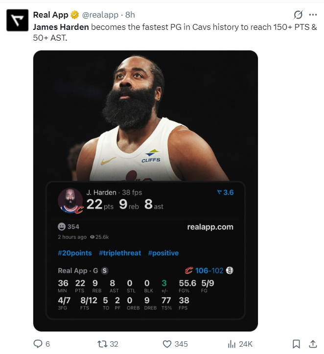 1.哈登成为骑士最快达成150分+50助攻的球员;